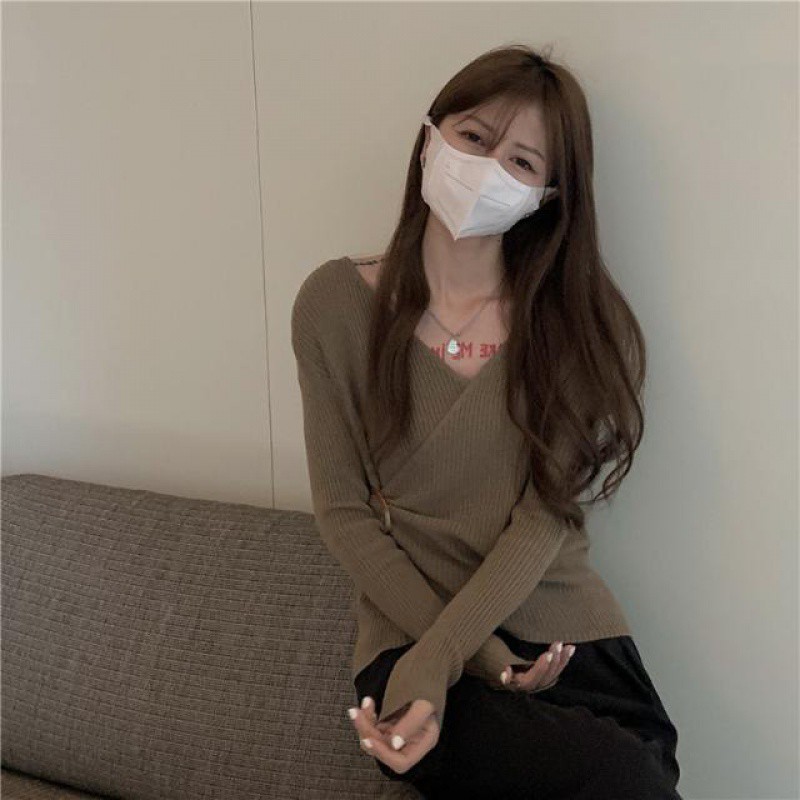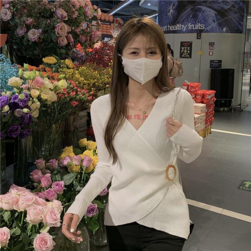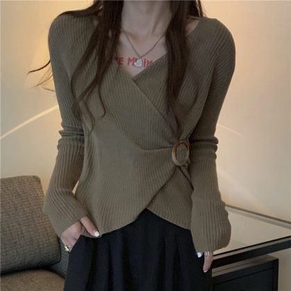| nameOriginal | Sweet and Hot V-neck Sweater Women's Spring and Autumn New Design Irregular Cross Button Slim Elegant Top |