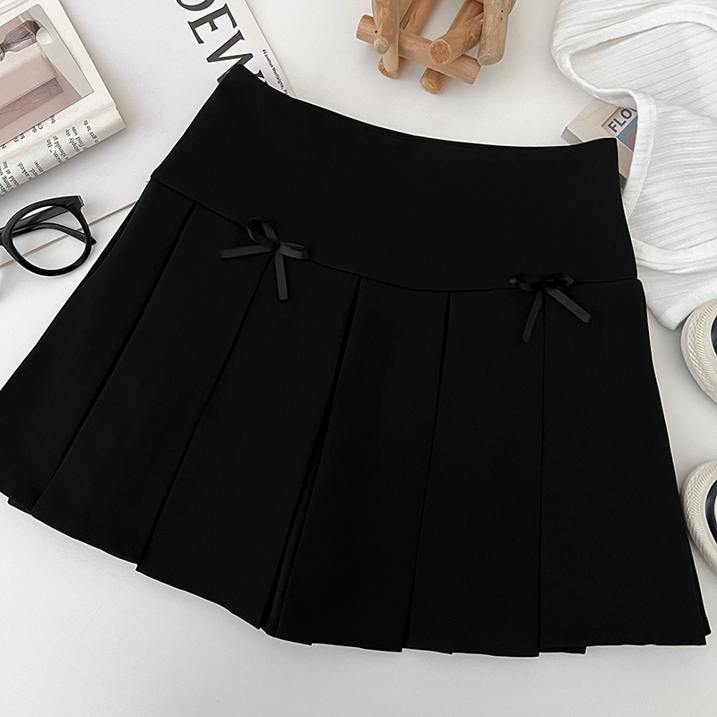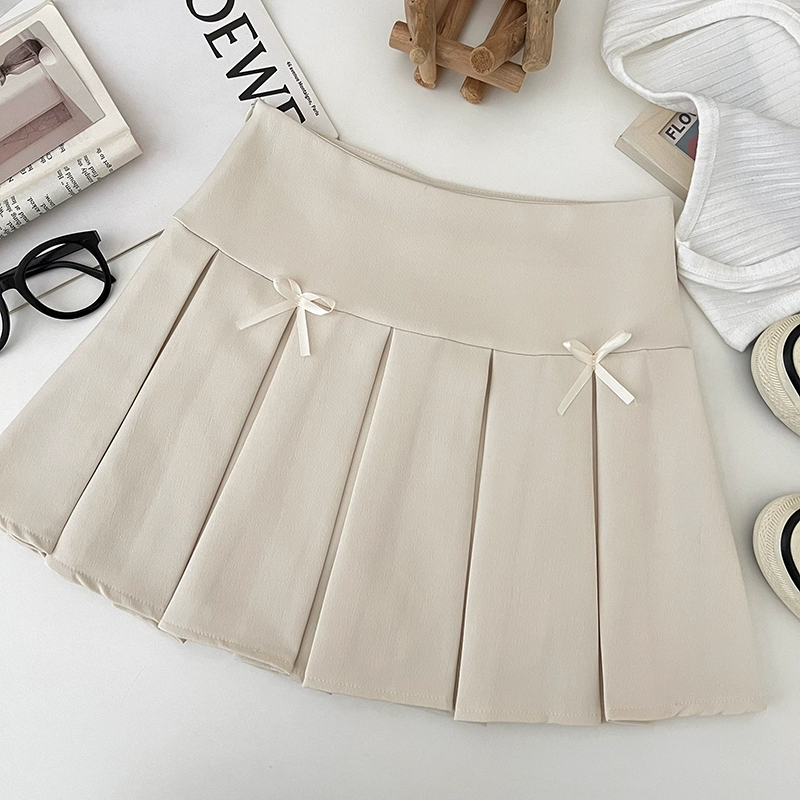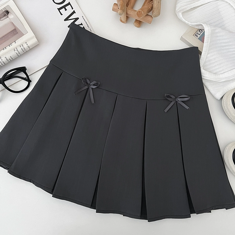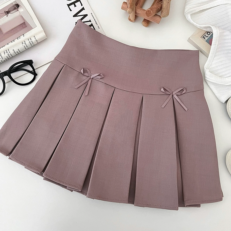 Sweet and slimming pleated skirt with anti-exposure three-dimensional bow