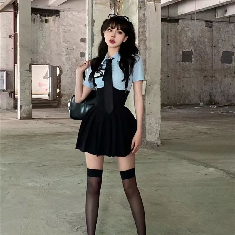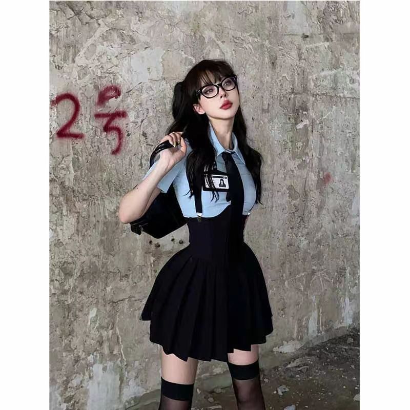 | nameOriginal | Sweet and spicy academic style JK suit women's summer 2024 new pure short sleeve shirt fishbone pleated skirt two-piece set tide |