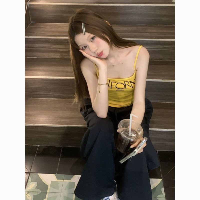 | nameOriginal | Sweet and Spicy American Style Yellow Sling Women's Summer New Vintage Spice Girls Inner Vest Outer Wearing Short Niche Top |