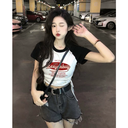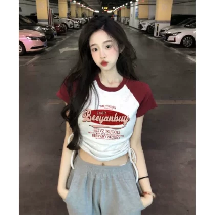 Sweet and Spicy Design Color Block Print Drawstring Short Sleeve T-Shirt