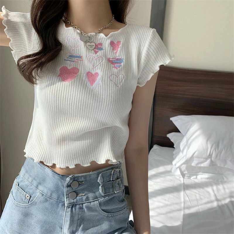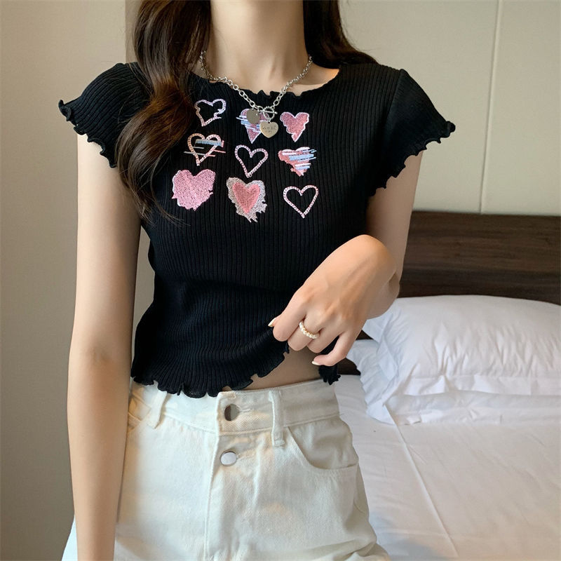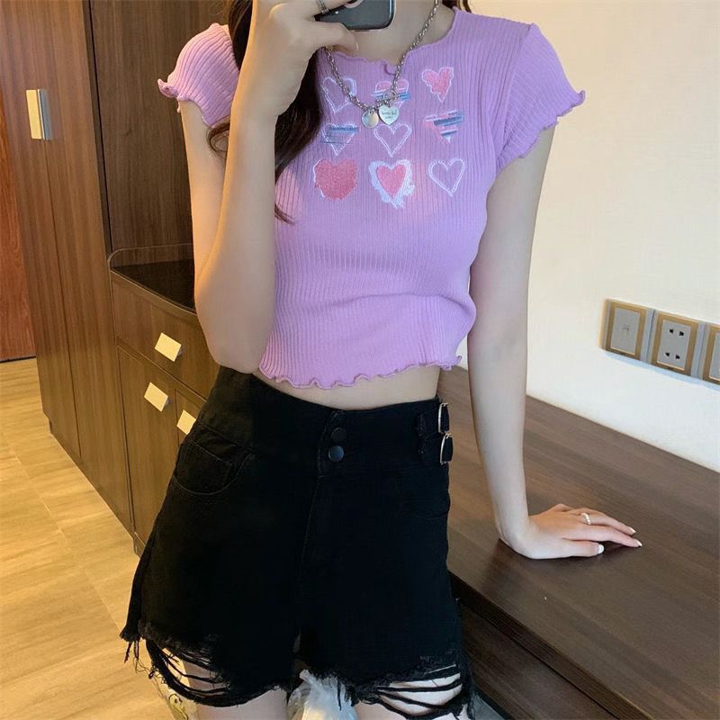 | nameOriginal | Sweet and Spicy Pink Knitted Short-sleeved Short T-shirt Summer Design Sense Niche Tight Short Top Female Summer Spice Girl Slim-fit |