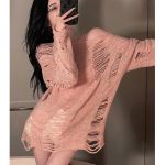 | nameOriginal | Sweet and spicy pink ripped Korean mid-length sweater |