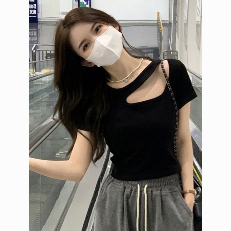 | nameOriginal | Sweet and Spicy Pure Desire Style Short Black Shirt Summer 2024 Design Sense Hollow-out Slim-fit Short-sleeved Top for Women |