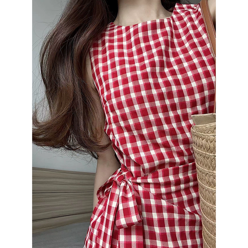| nameOriginal | Sweet and spicy red plaid summer chic seaside sundress |
