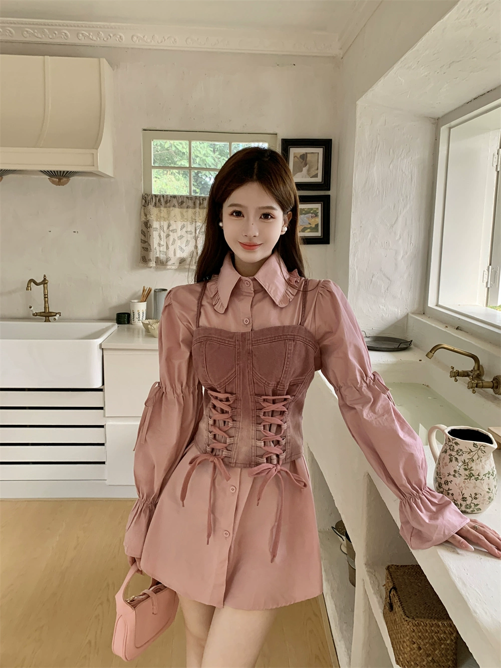 | nameOriginal | Sweet and spicy spring denim vest layered with white suspenders |