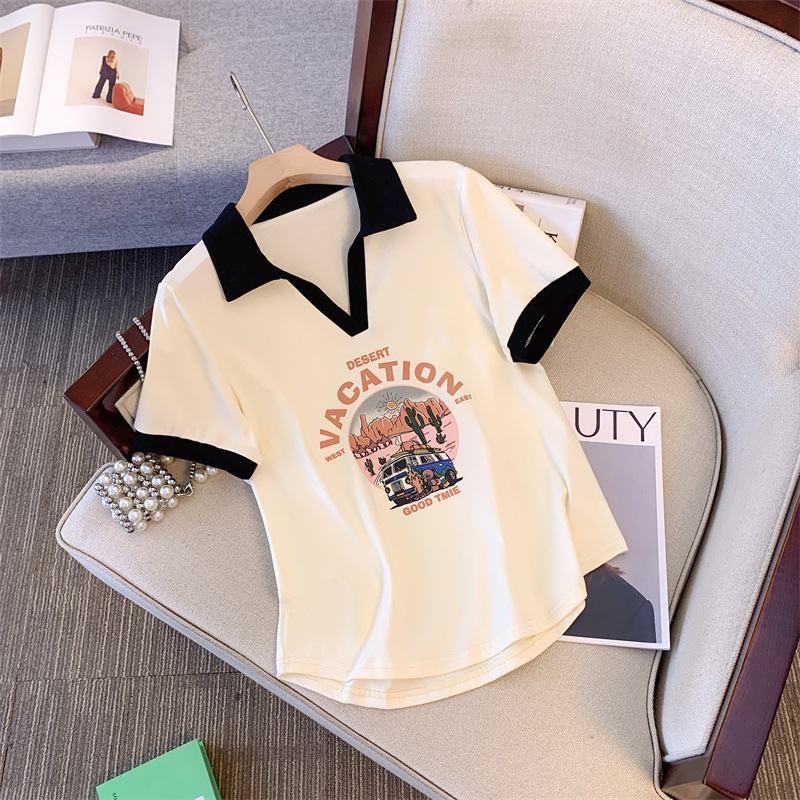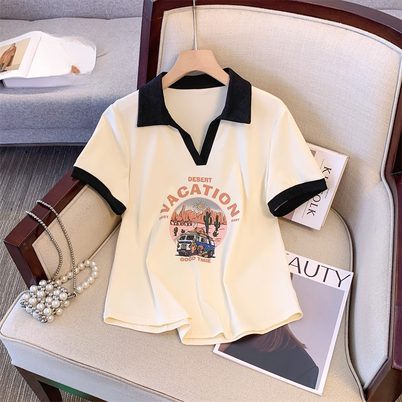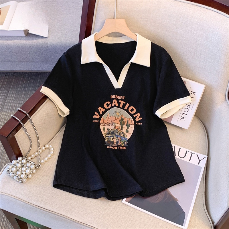 | nameOriginal | Sweet and Spicy Style Polo Shirt Summer 2024 New Arrival plus size Slimming chubby girl Fashion Half Open Collar Printed Short Sleeve T-Shirt for Women |