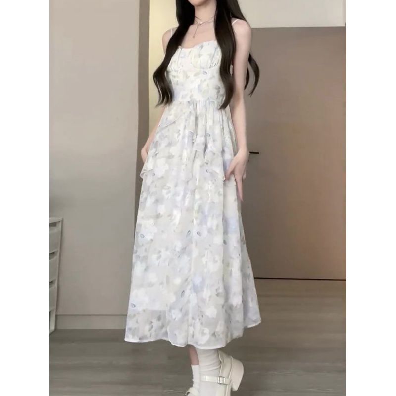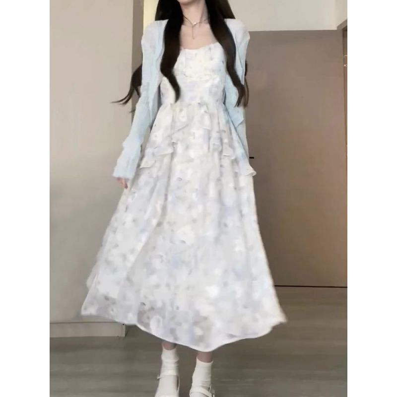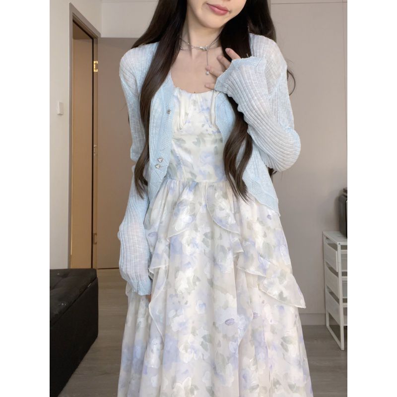 | nameOriginal | Sweet and Spicy Style Ruffled Chiffon Floral Skirt suit Women's Summer Thin Sunscreen Cardigan Sweet Tight Waist Sling dress |