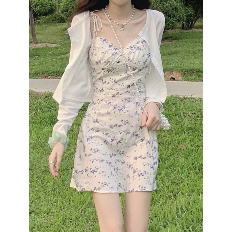 | nameOriginal | Sweet and Spicy Style Strap Floral Sling dress suit Women's Spring and Summer Thin Sunscreen Cardigan Sweet Waist Skirt |