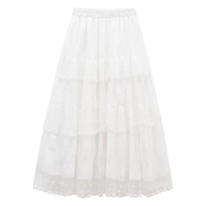 | nameOriginal | Sweet and textured slimming cake-length lace dress with full swing |