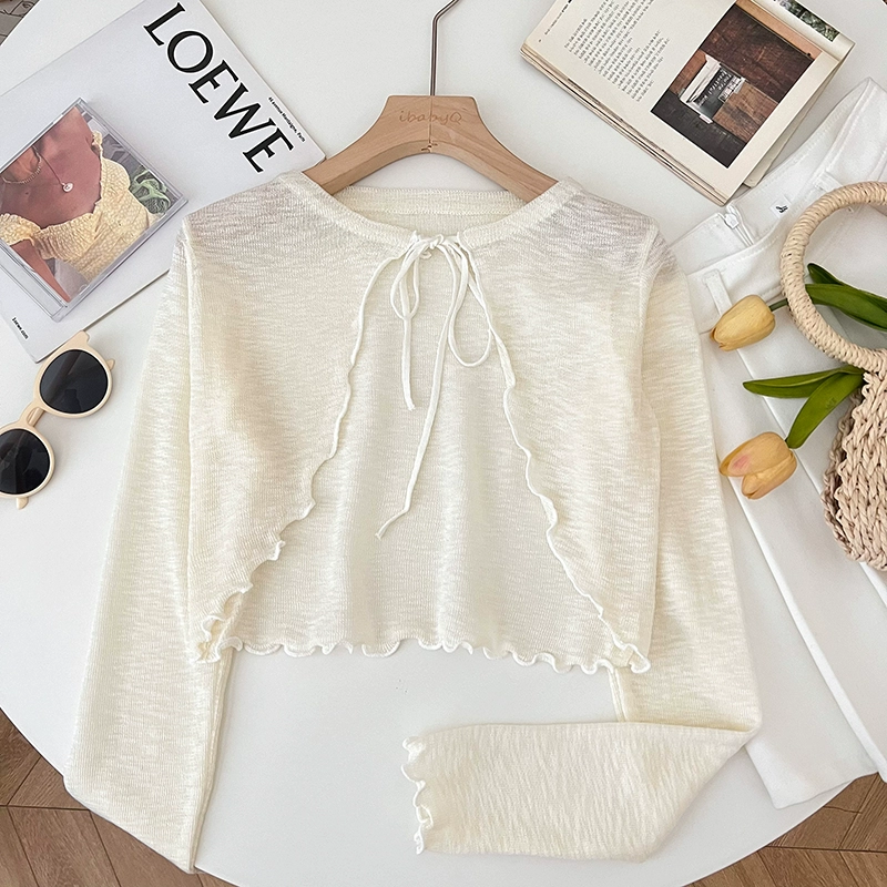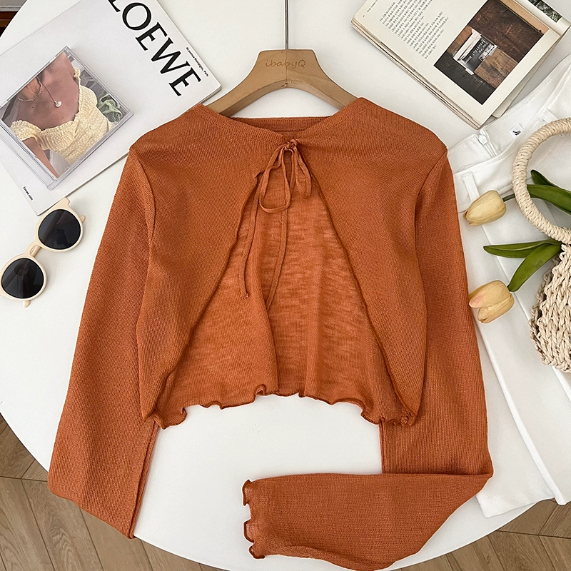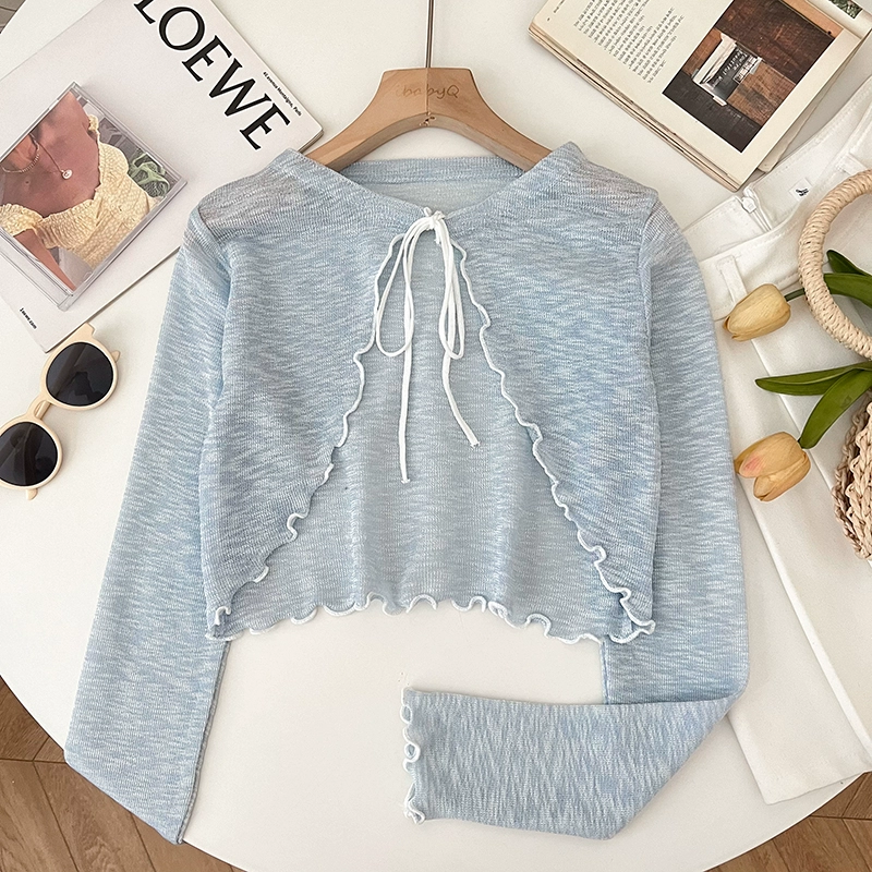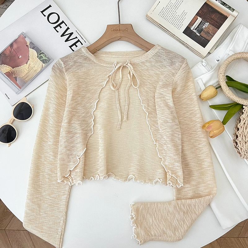 | nameOriginal | Sweet and versatile lace-up bow fungus thin long-sleeved sweater cardigan sun protection shirt jacket top for women |