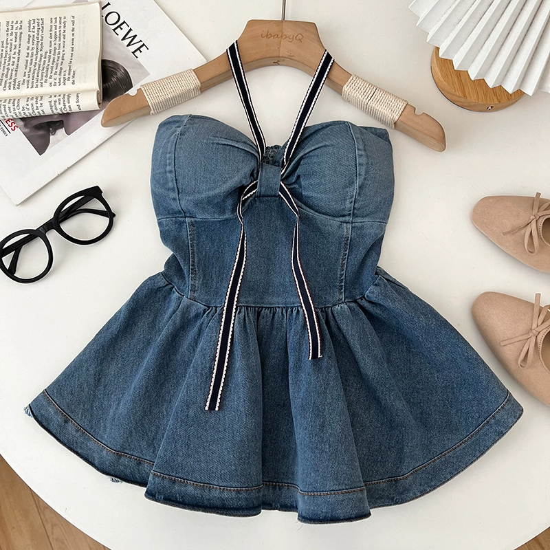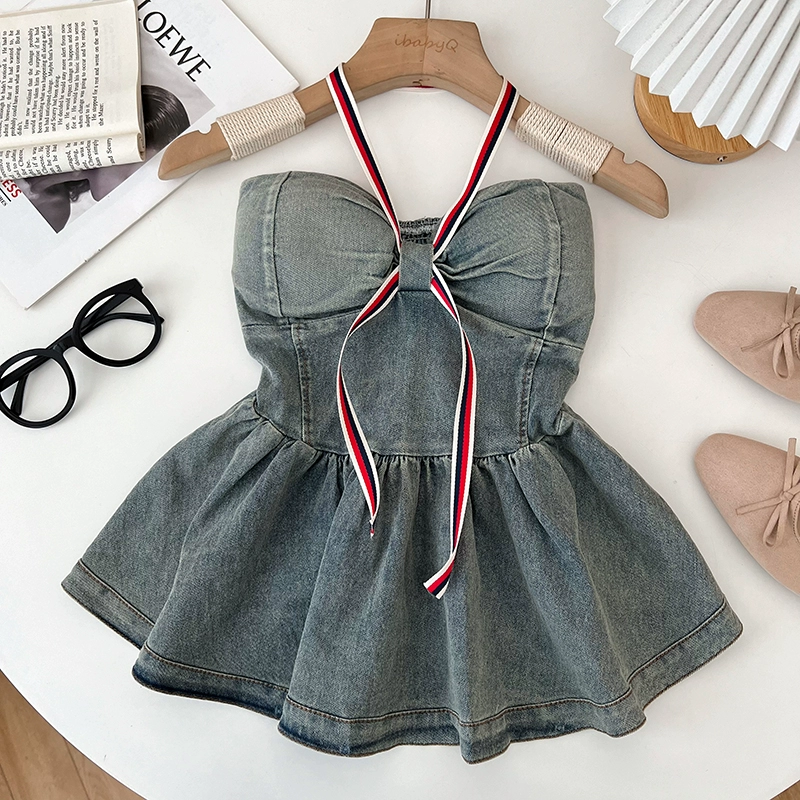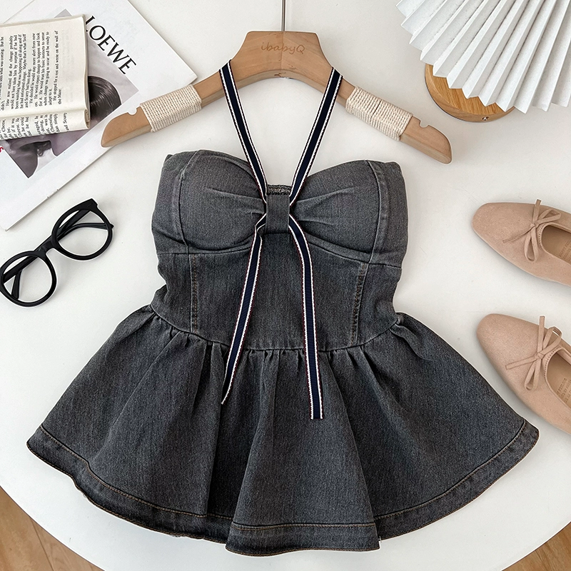 | nameOriginal | Sweet and versatile lace-up bow slim fit denim ruffled tube top vest top for women summer new style |