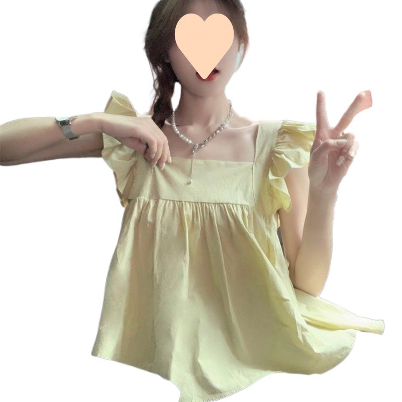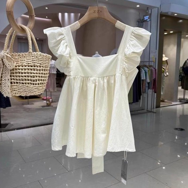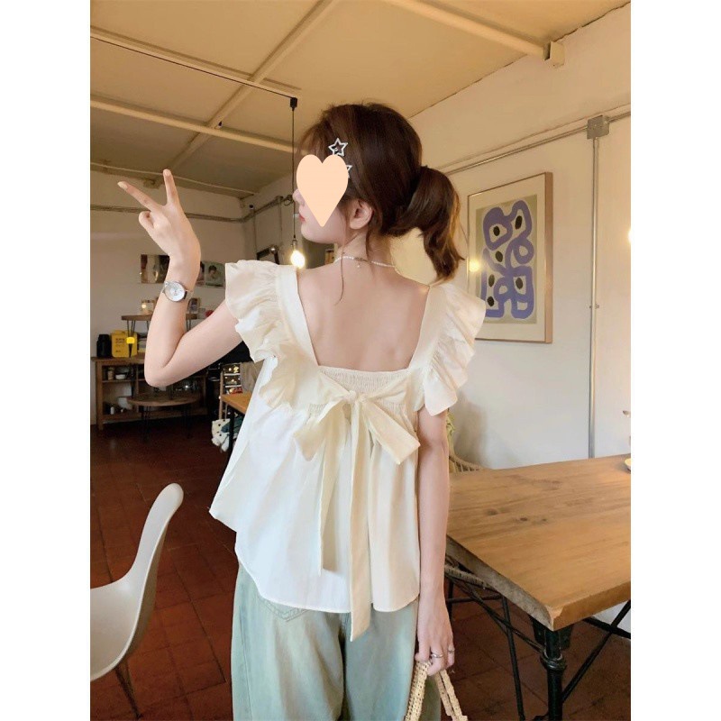 Sweet Backless Two-Wear Bow Strap Flying Sleeve Shirt Women’s Summer New Niche Belly Covering Slimming Top