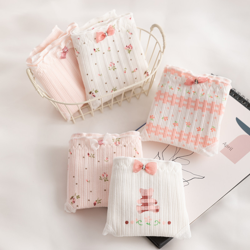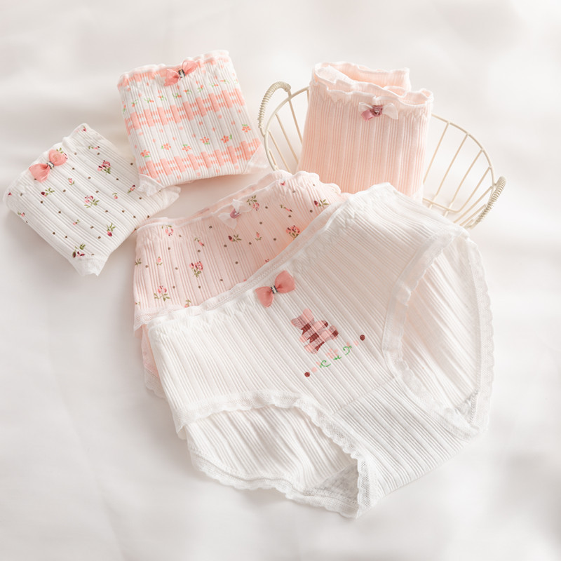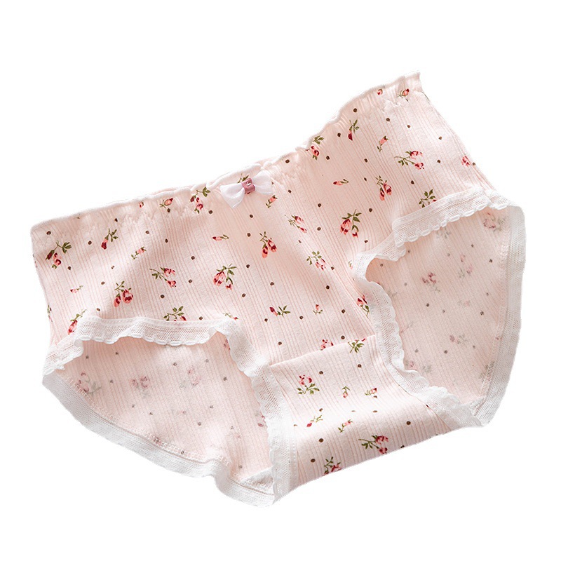 | nameOriginal | Sweet bow lace edge small floral thread underwear women's cotton crotch mid-waist hip-wrapped girl briefs wholesale |