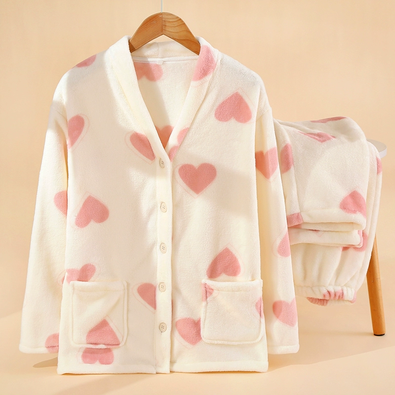 | nameOriginal | Sweet Cardigan Flannel Pajamas Women's Winter Plush Thickened Coral Fleece Warm Student Plush Home Clothes Set |
