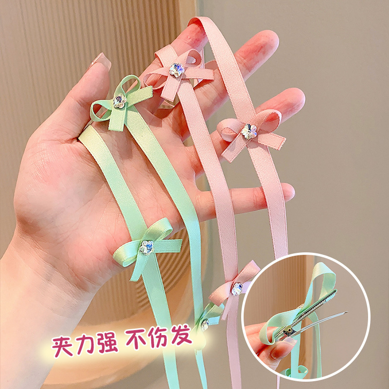 | nameOriginal | Sweet Cool Girl Long Ribbon Bow Hairpin South Korea Color Diamond Hair Ribbon Children's Hairpin Headwear Girls' Hair Accessories |