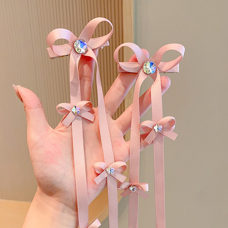 | nameOriginal | Sweet Cool Girl Long Ribbon Bow Hairpin South Korea Color Diamond Hair Ribbon Children's Hairpin Headwear Girls' Hair Accessories |