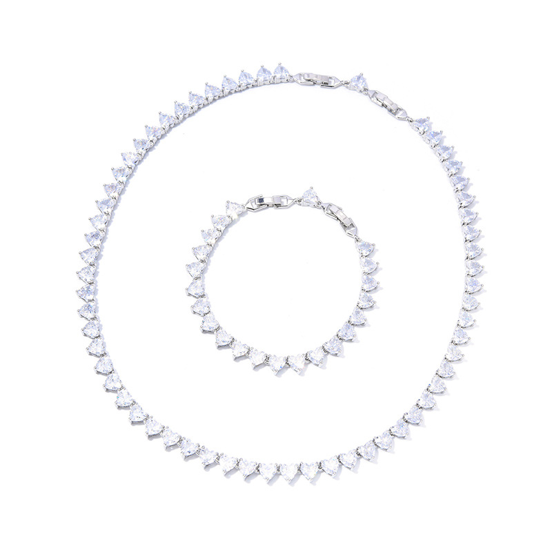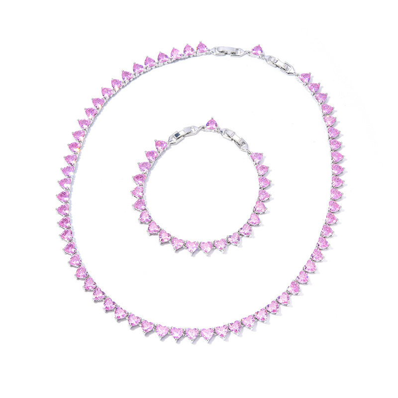| nameOriginal | Sweet Cool Micro-inlaid Diamond Pink Heart Bracelet Necklace Women's Light Luxury Heart-shaped Love Jewelry suit Banquet Accessories |