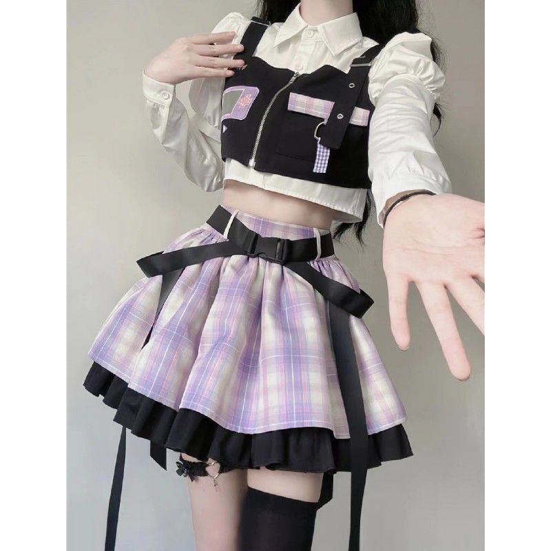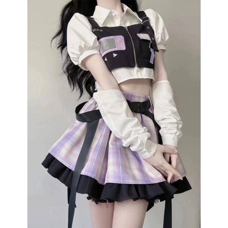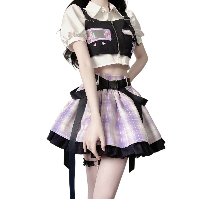 | nameOriginal | Sweet cool niche design fashion short puff sleeve shirt vest vest high waist short skirt western style three-piece suit |