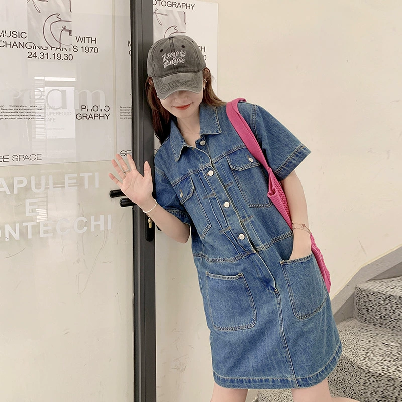 Sweet and cool denim dress for summer slim short sleeves