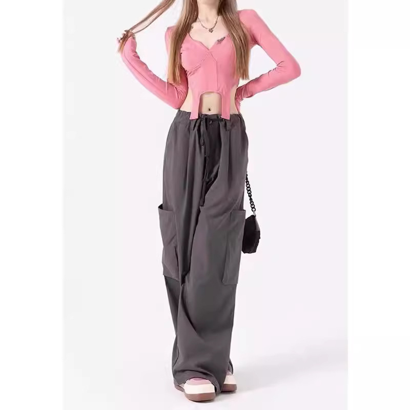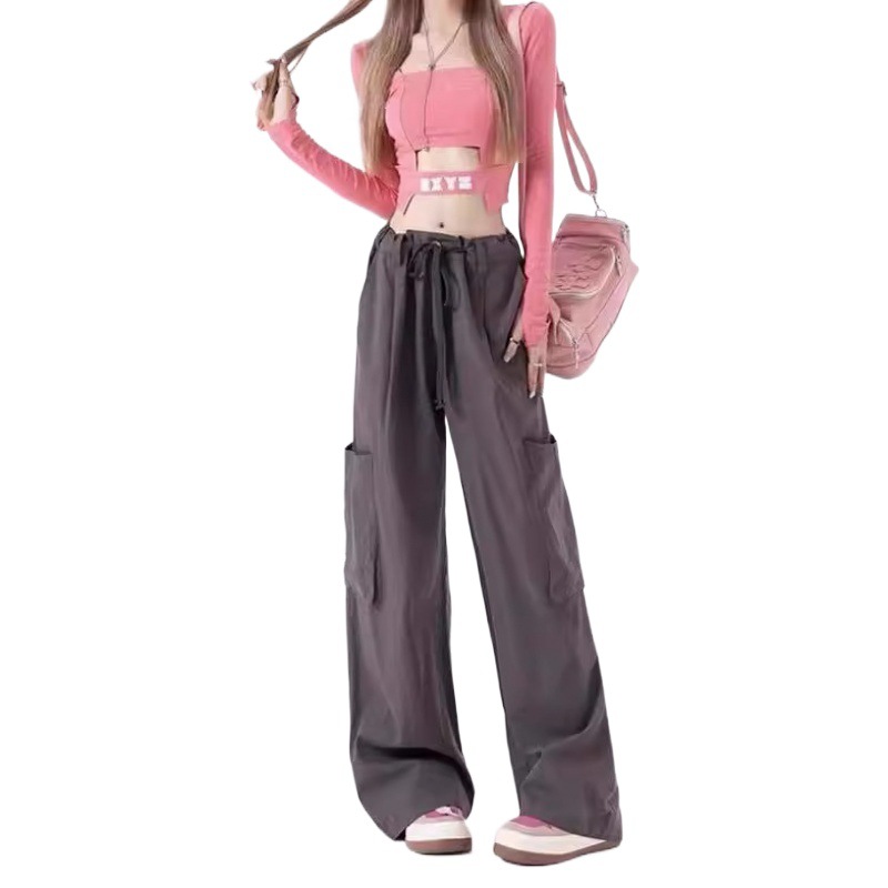 | nameOriginal | Sweet Cool Style Hot Girl American Style Overalls Women's Loose Design Niche Casual Wide Leg Grey Trendy Ins Pants |