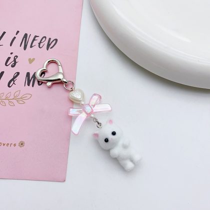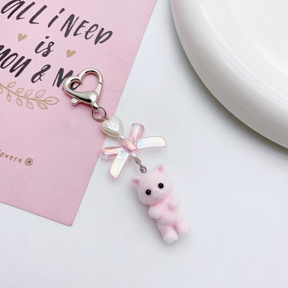 Sweet Cool Y2K Girl’s Heart Cute Flocking Kitten Bow Love Keychain Joker Bag Pendant Exquisite Women