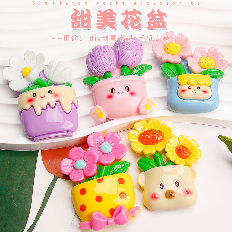 | nameOriginal | Sweet Flower pot cartoon glossy handmade diy cream glue phone case water cup sticker hairpin material resin accessories |