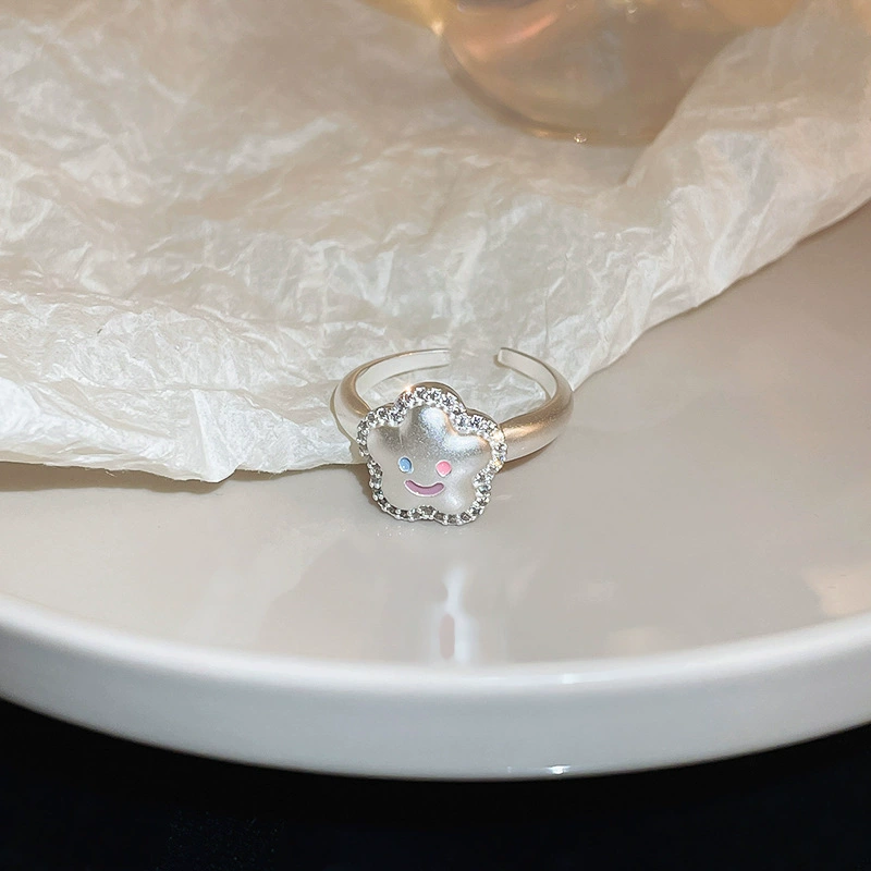 Sweet flower ring for women, exquisite and elegant cartoon rugged puppy pendant S925 silver open ring index finger ring trendy