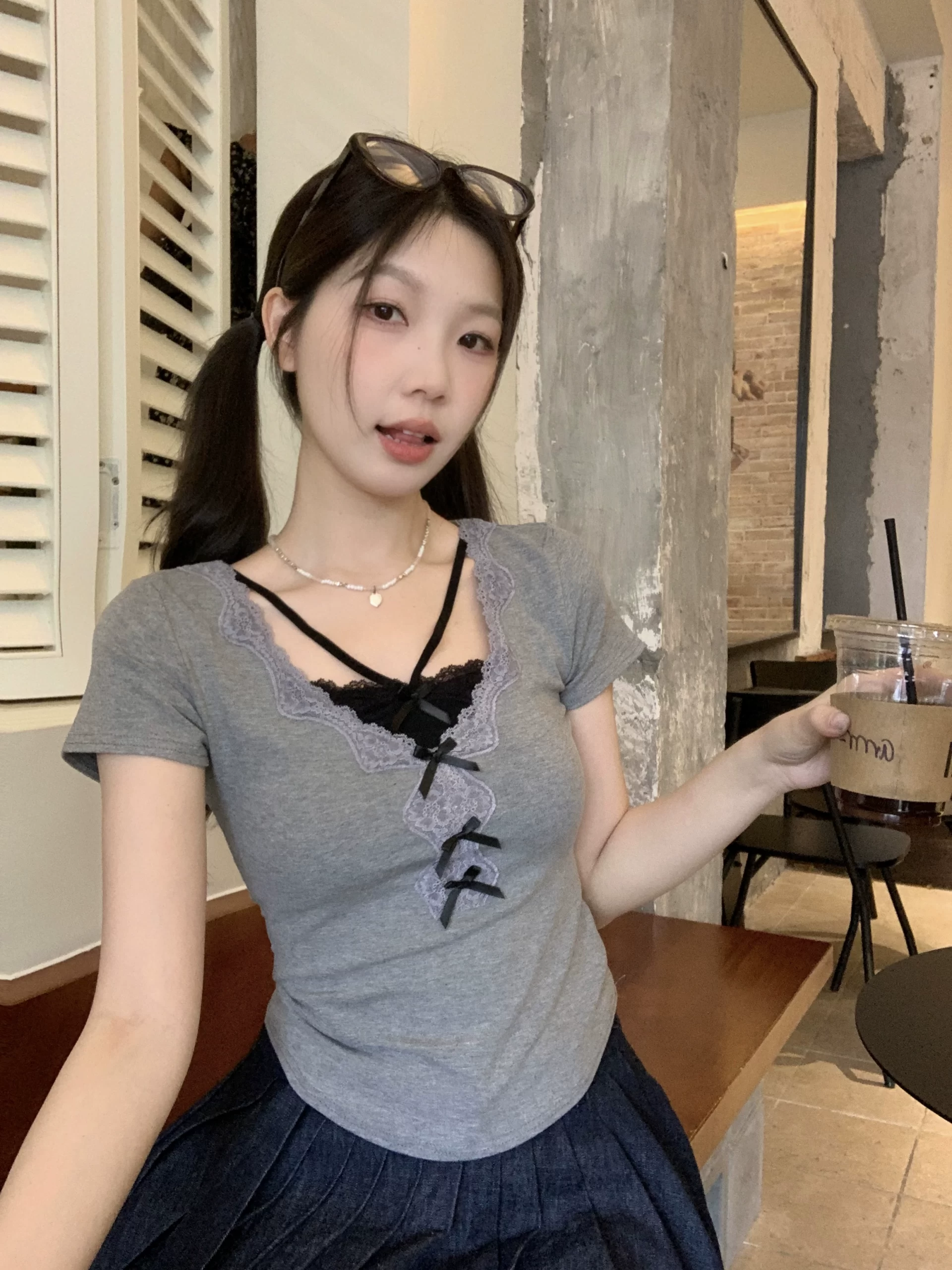 | nameOriginal | Sweet Girl Summer Waist Top Contrast Color Short Sleeve T-Shirt |