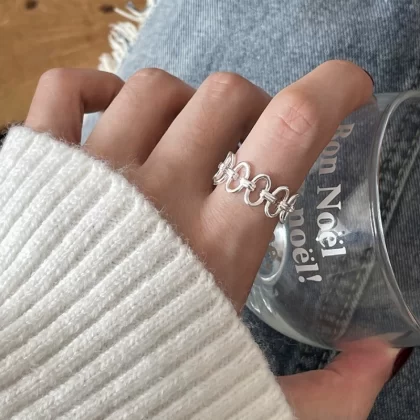 Sweet golden stamen ring for women hollow flowers daisy geometric open finger ring versatile stacked temperament index finger ring