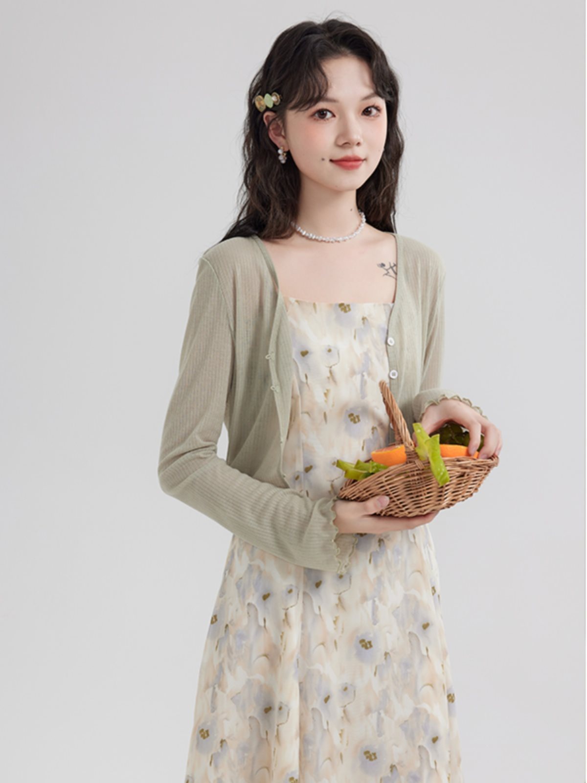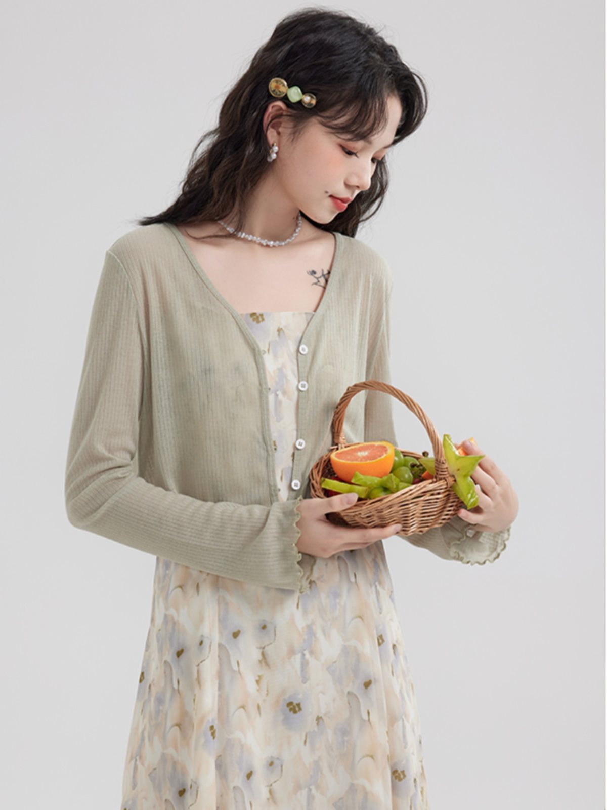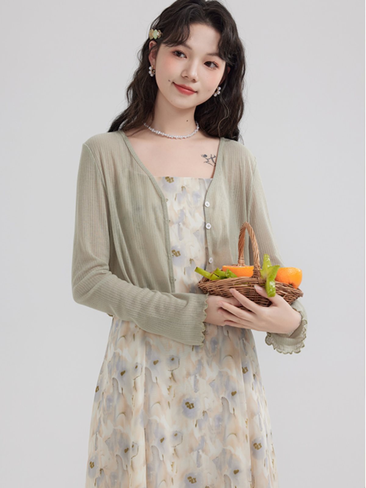 | nameOriginal | Sweet Green Thin Sunscreen Cardigan Women's Summer Sling Skirt Sling Outer Shawl Waistcoat Coat |