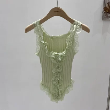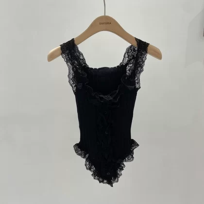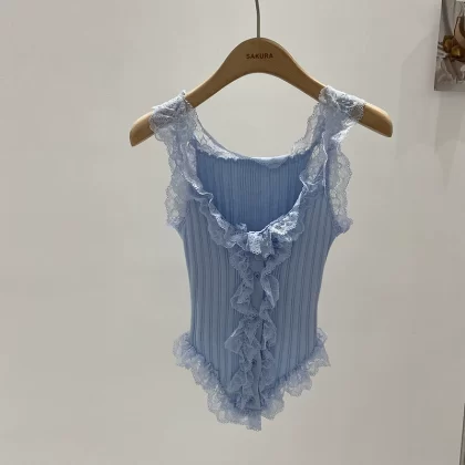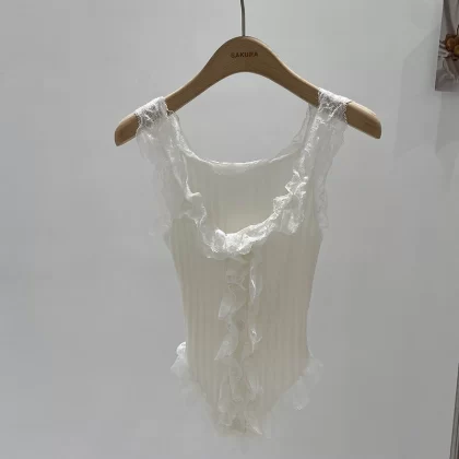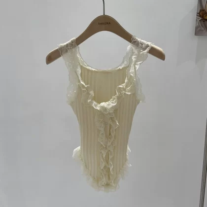 | nameOriginal | Sweet Hot Girl Lace Knit Camisole Women's Summer 2024 New Niche Outerwear Sexy Breast Revealing Short Top |