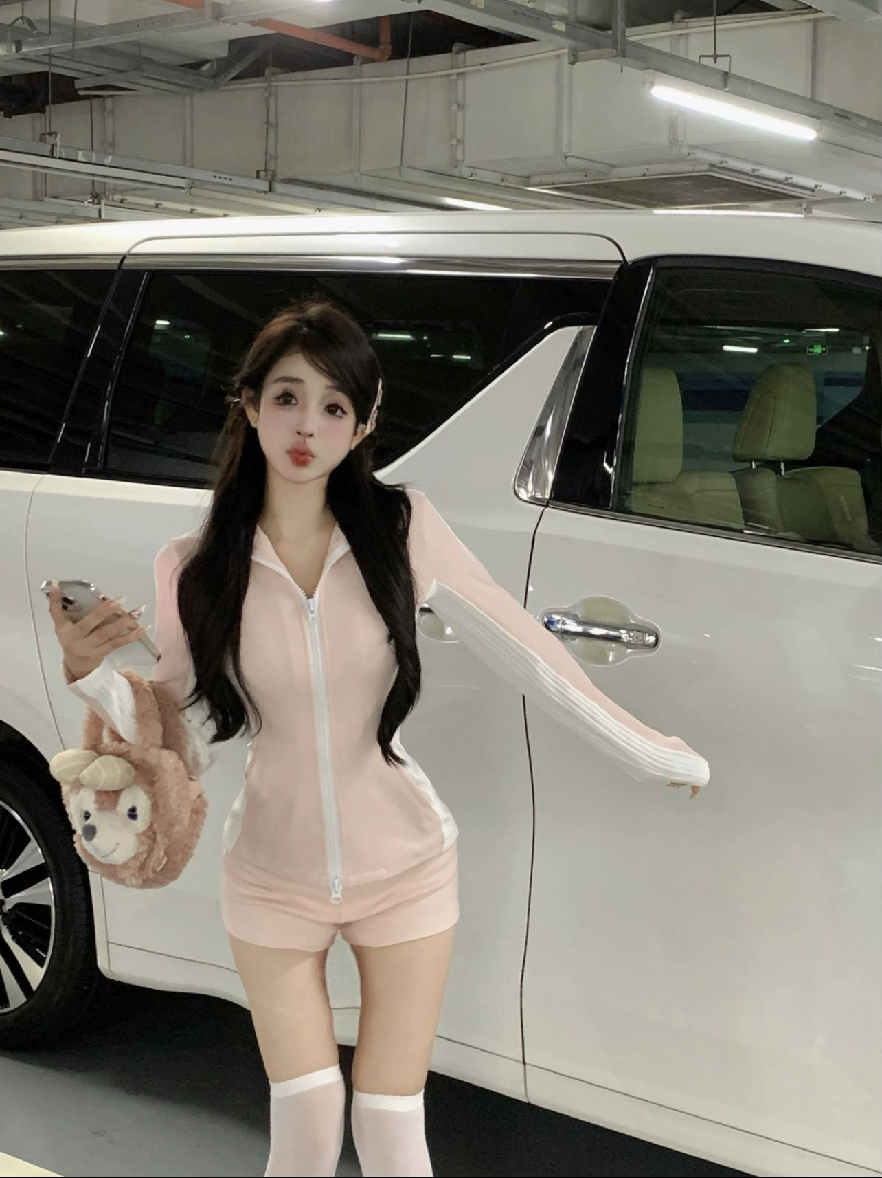 | nameOriginal | Sweet hot girl pink patchwork zipper sweatshirt straight cardigan |