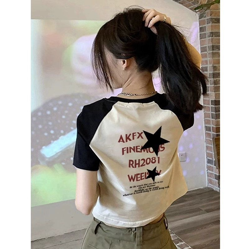 | nameOriginal | Sweet hot girl short-sleeved raglan sleeve T-shirt for women 2023 summer new design trendy brand niche pure cotton bottoming top |