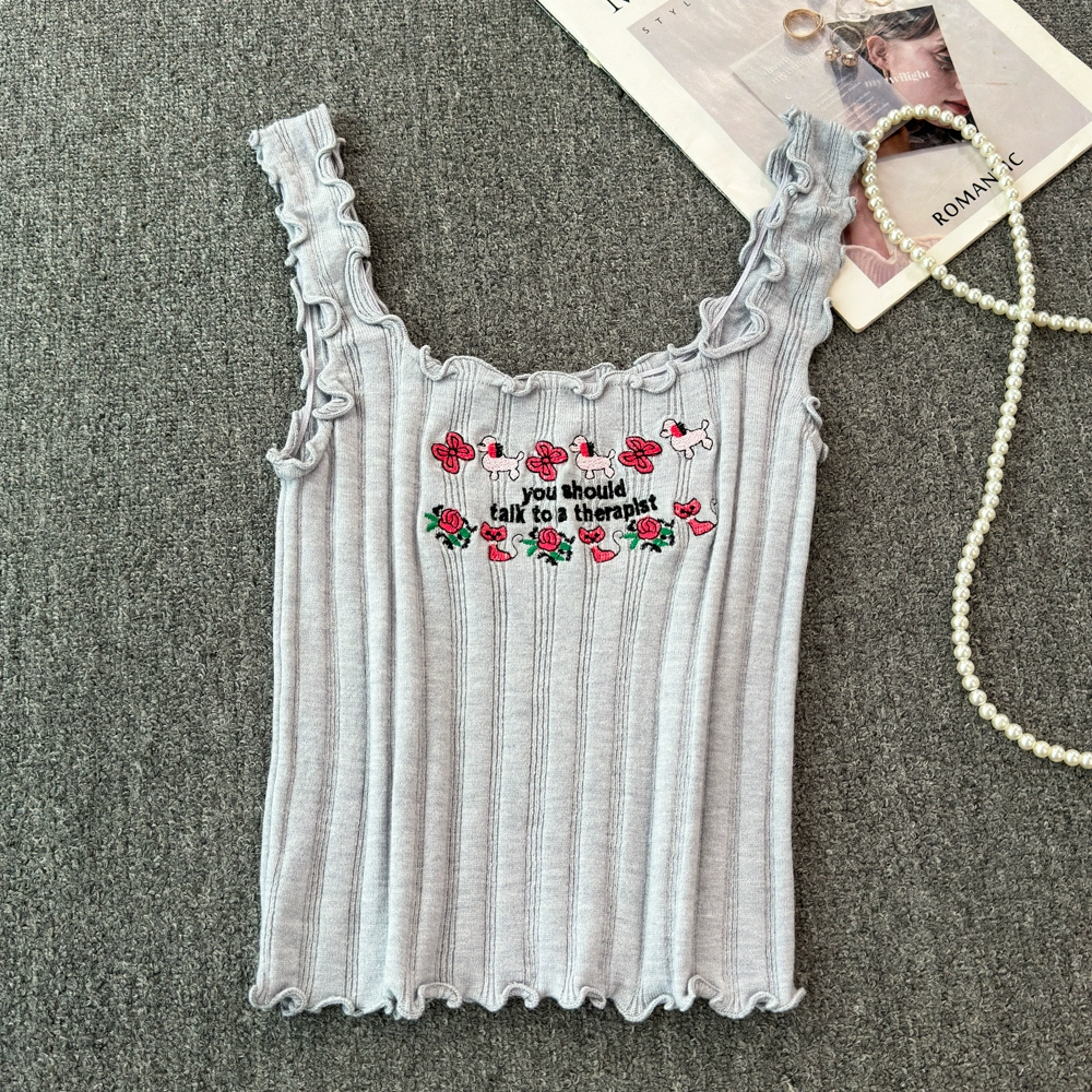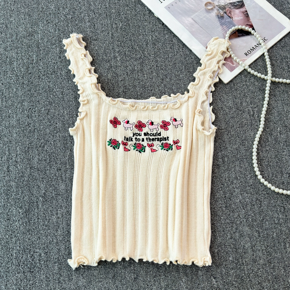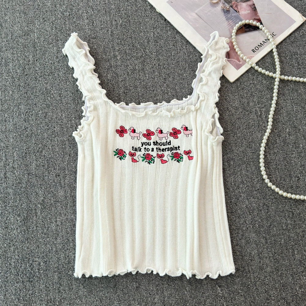 | nameOriginal | Sweet hot girl white embroidered camisole women's summer French sexy inner wear short top |