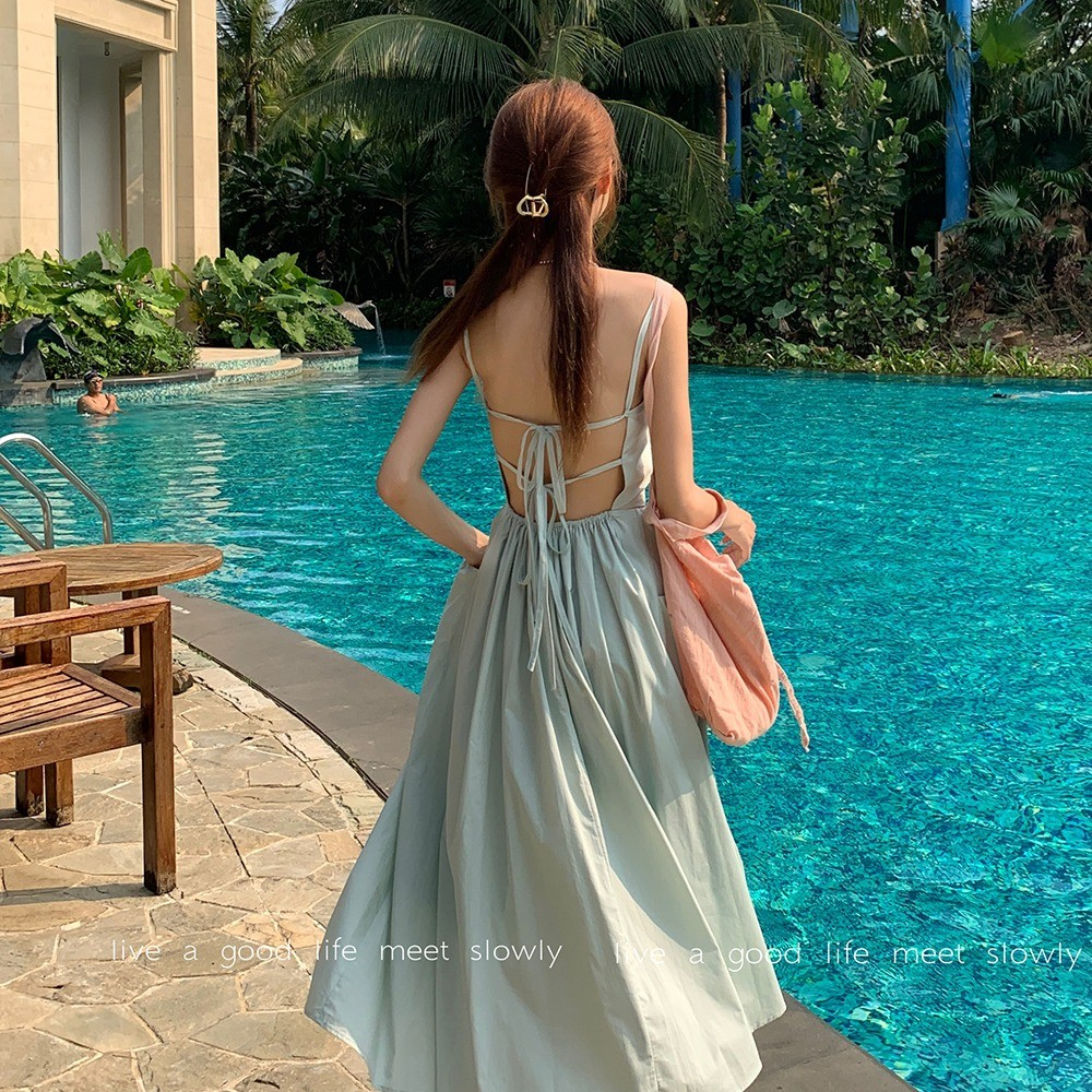 | nameOriginal | Sweet hottie backless summer seaside resort style suspender skirt |