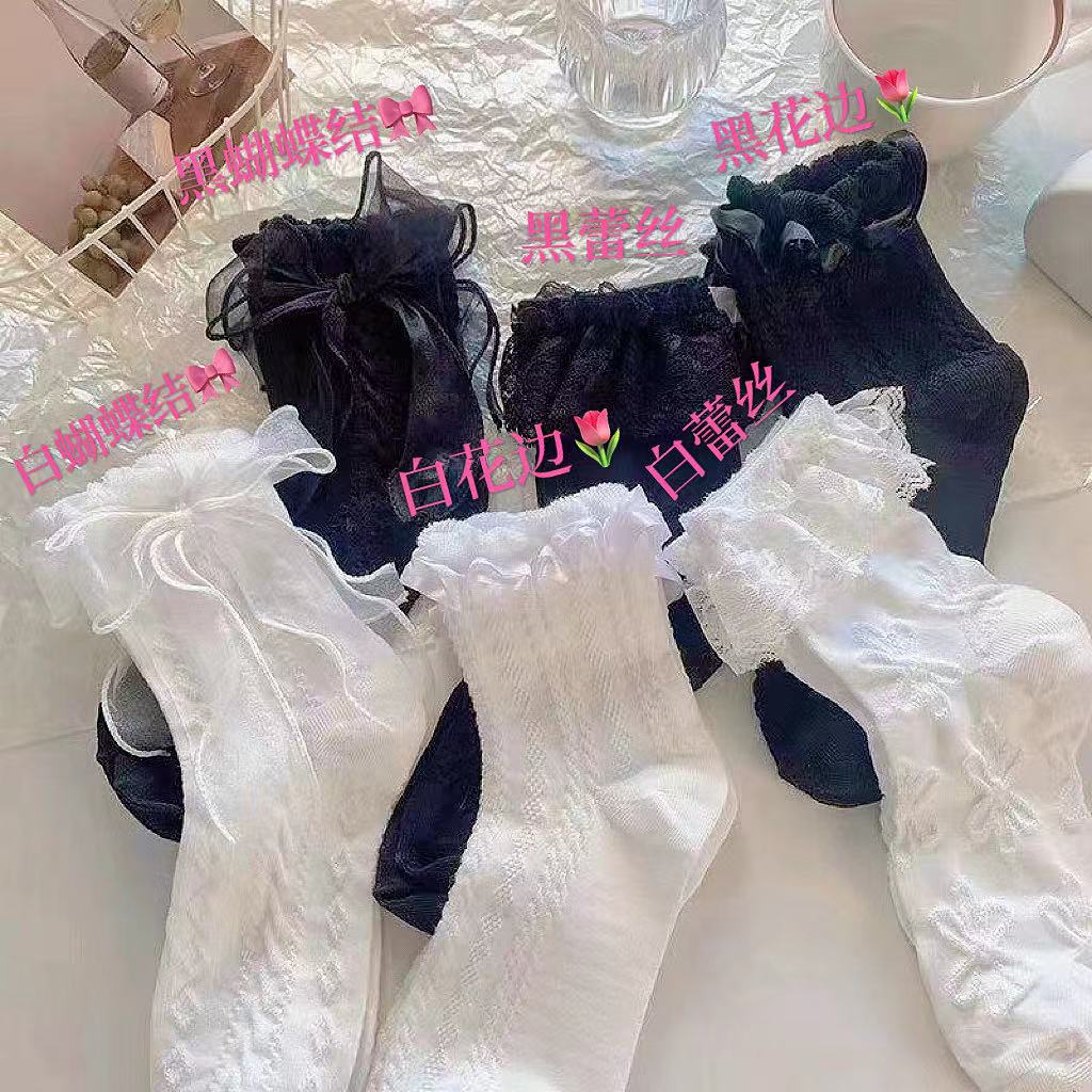 | nameOriginal | Sweet Japanese Summer Thin Mid-Length Socks Lolita Lace JK Socks Simple White Bow Lace Socks for Children |