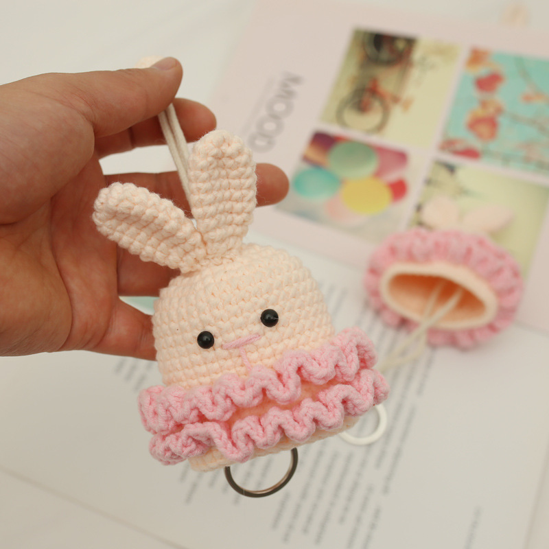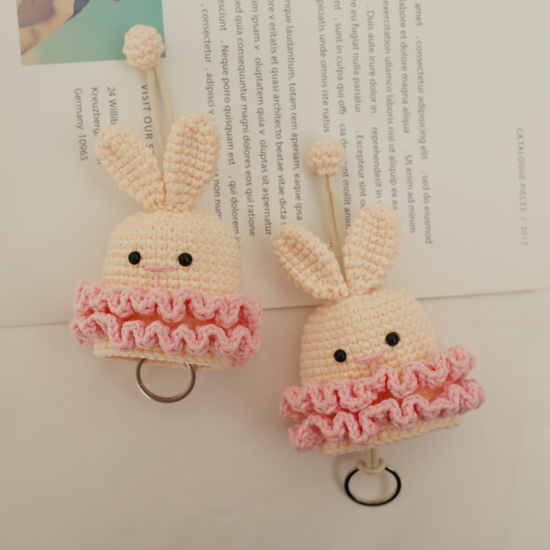 | nameOriginal | Sweet Lace Rabbit Knitted Key Protective Case for Girls Car Key Bag Hand Knitted Crochet Finished Pendant Wholesale |