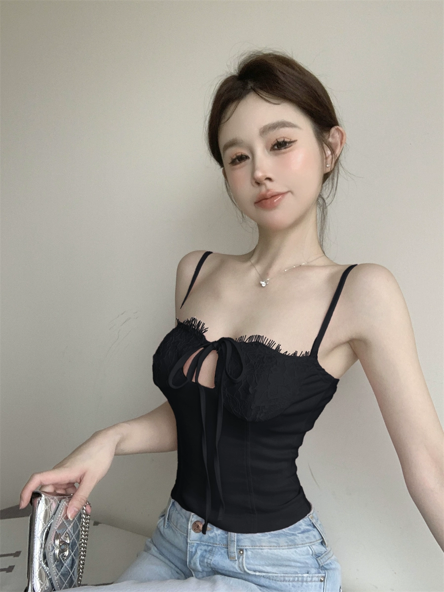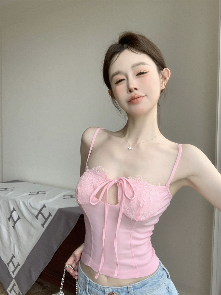 | nameOriginal | Sweet lace splicing camisole for female anchors, designed to be worn inside and outside with a hollow lace-up tube top |