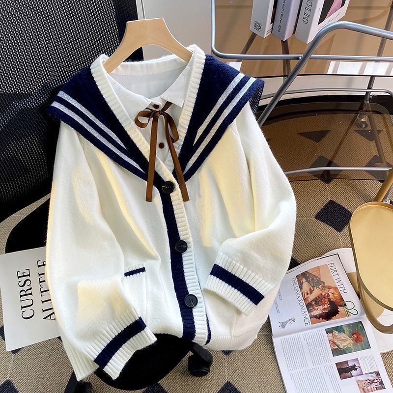 | nameOriginal | Sweet little milk lovely navy collar coat autumn 2024 New loose gentle style all-match college style cardigan |