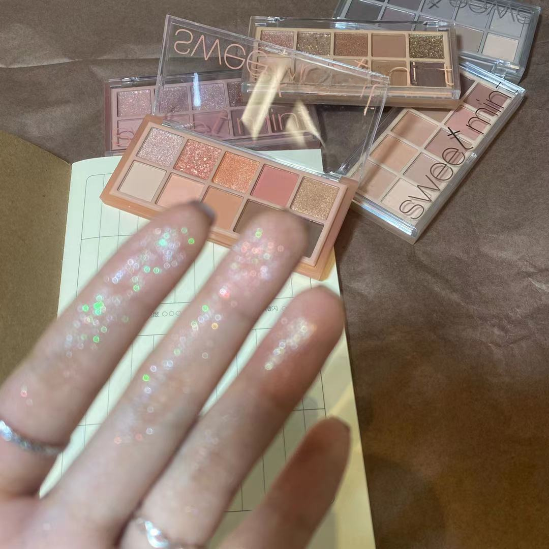 sweet mint novice 10 color eye shadow plate sequins glitter Pearl mashed potato matte ins color makeup plate cross border
