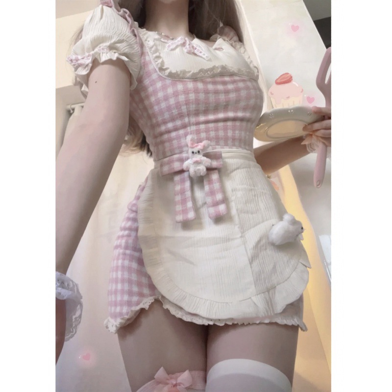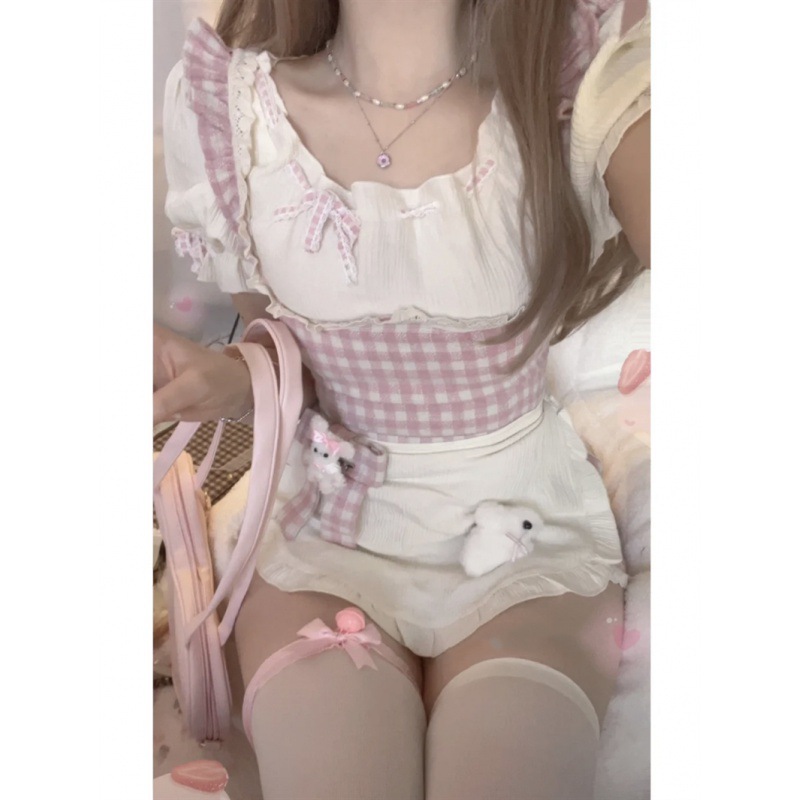 | nameOriginal | Sweet Plaid sling dress women's summer skirt pastoral style square collar sexy hip skirt short skirt two-piece set |