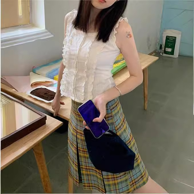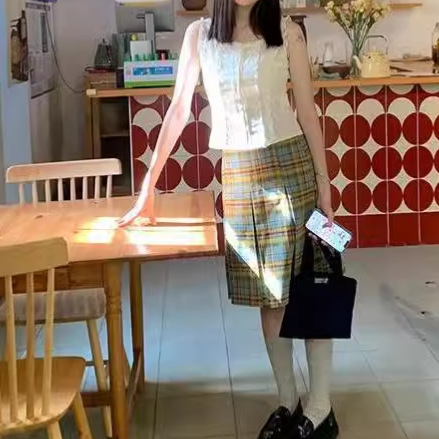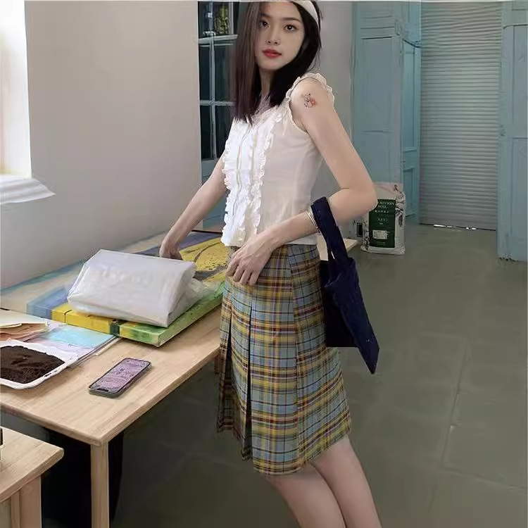 | nameOriginal | Sweet Retro Small High Waist Plaid A- Line Skirt Women's Summer Skirt Slimming Plaid Skirt 2024 Art |