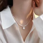 Sweet Rose Flower Necklace for Women Exquisite, Elegant and Gentle Round S925 Silver Plated Clavicle Chain Pearl Versatile Necklace