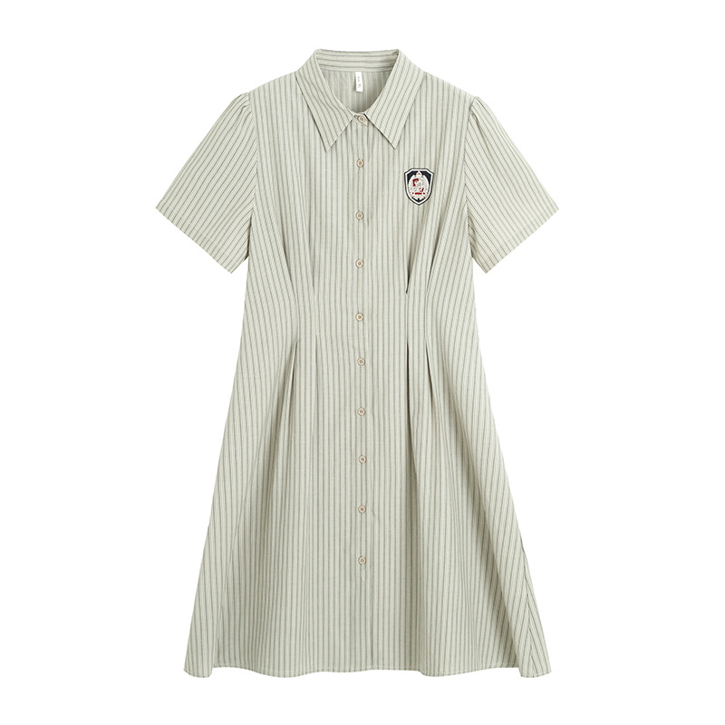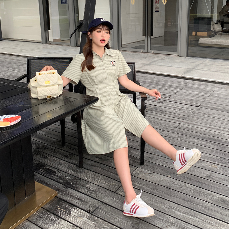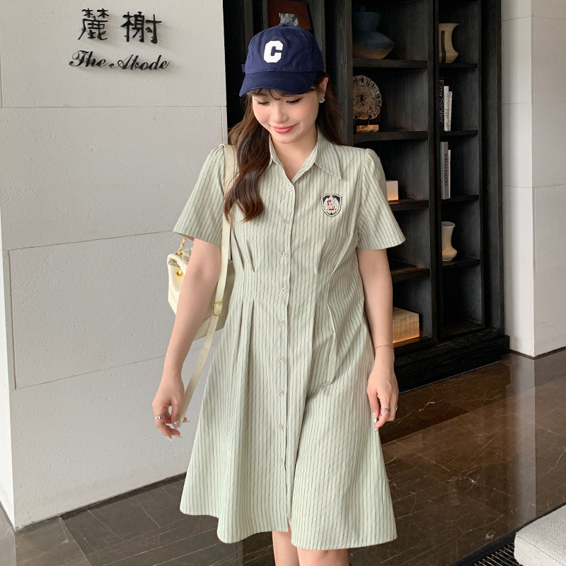 | nameOriginal | Sweet Salt Shirt Dress Summer Large Size Women's Wear Belted Slimming College Style Badge Striped Skirt 62428 |