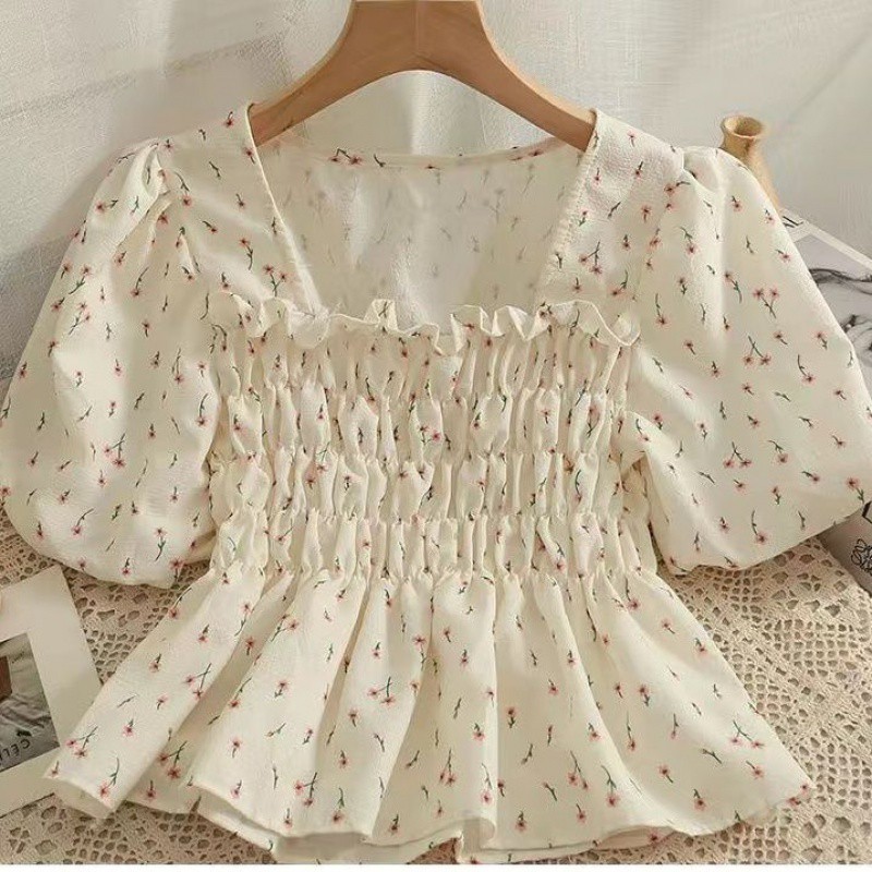| nameOriginal | Sweet Small Fresh and Thin Small Floral Design Retro Top Women's Short Sleeve |