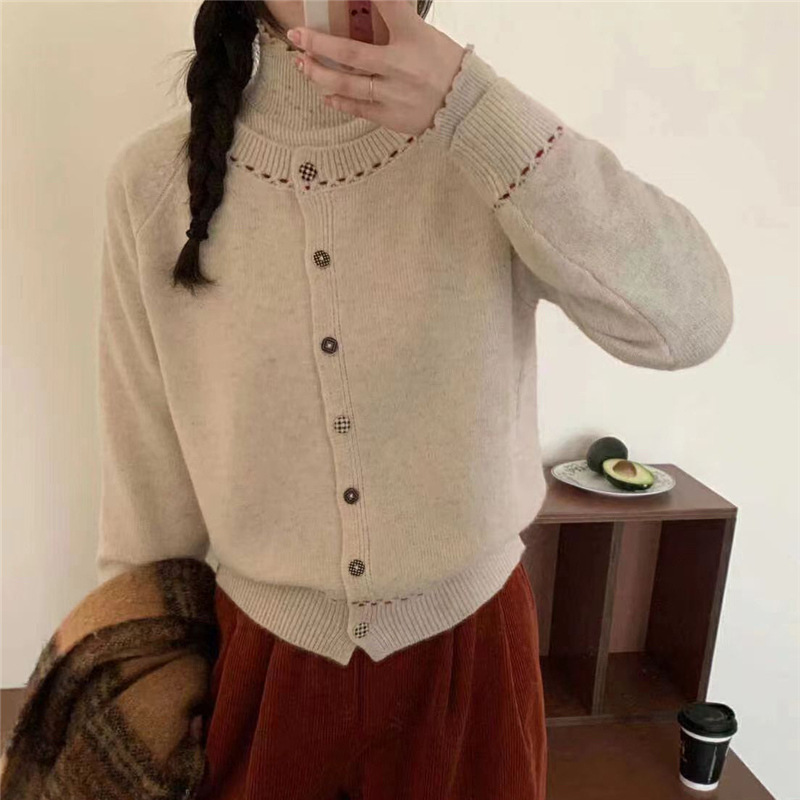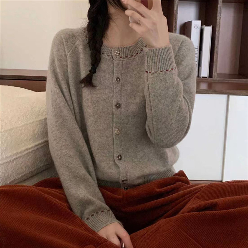 | nameOriginal | Sweet Soft Waxy Retro Fashion Color Button Round Neck Long Sleeve Knitted Cardigan Loose Slimming Design Sense Sweater Coat Women |