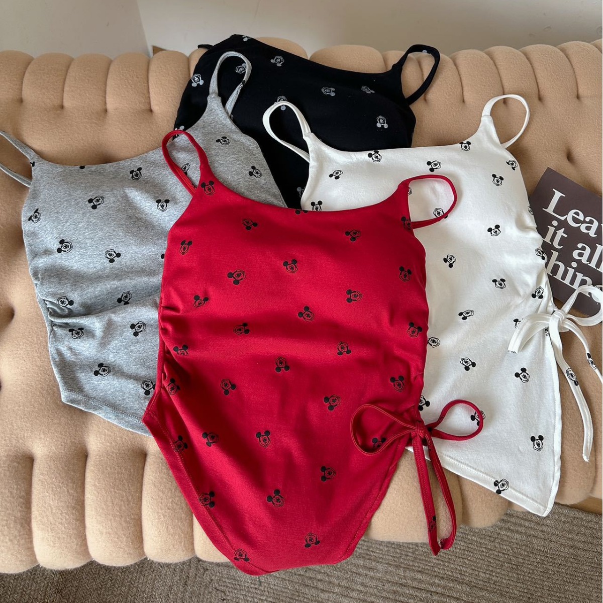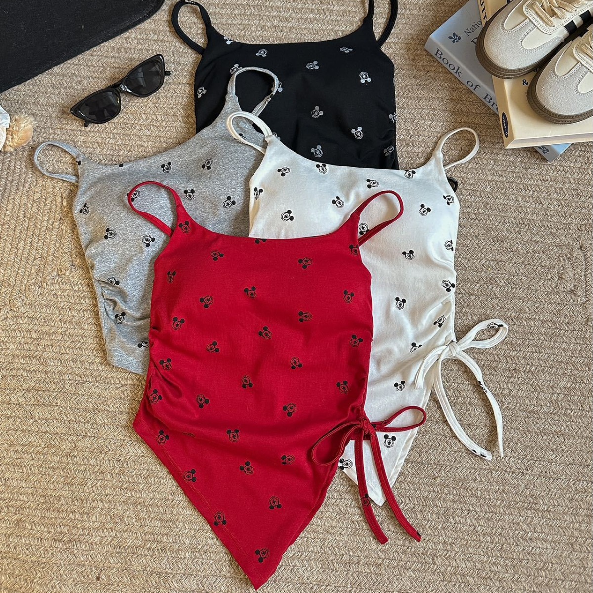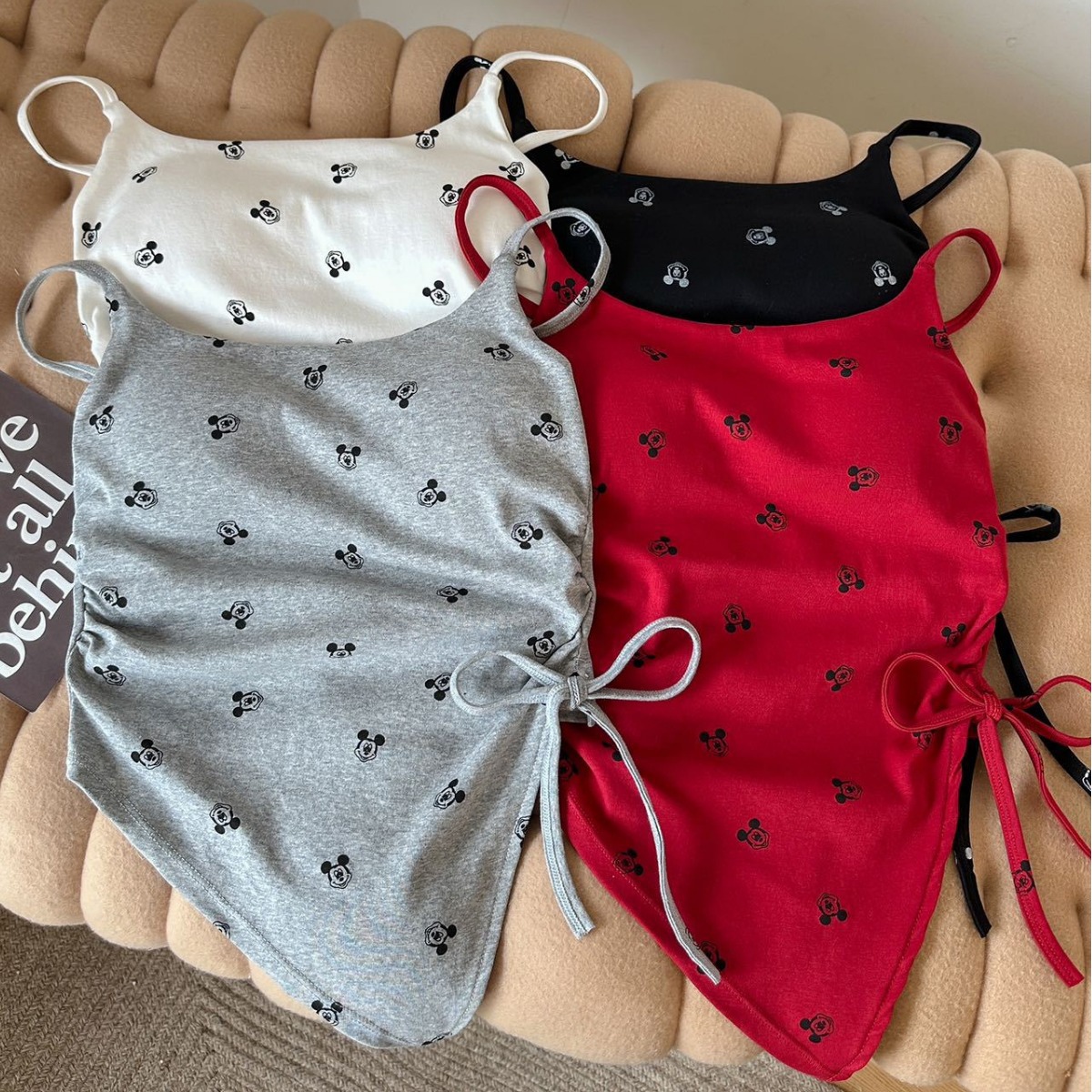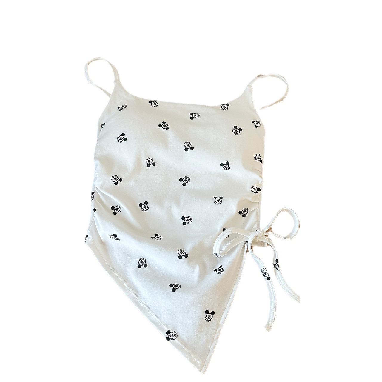 Sweet Spice Girl Niche Irregular Printed Bow Camisole Women’s Summer Slim-fit Beautiful Back Slimming Outer Wear Top