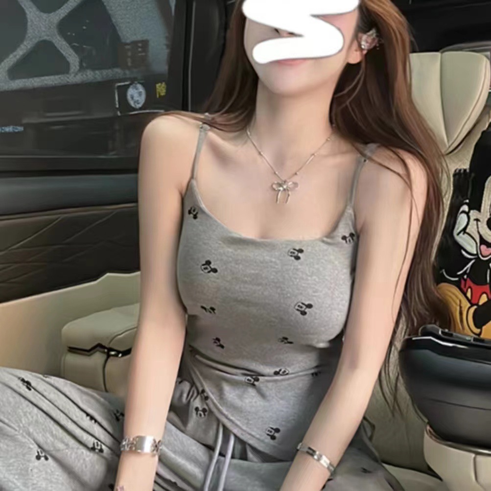 Sweet Spice Girl Niche Printed Irregular Camisole Vest Women’s Chest Pad Summer Outer Wear All-match Slim-fit Slim Top