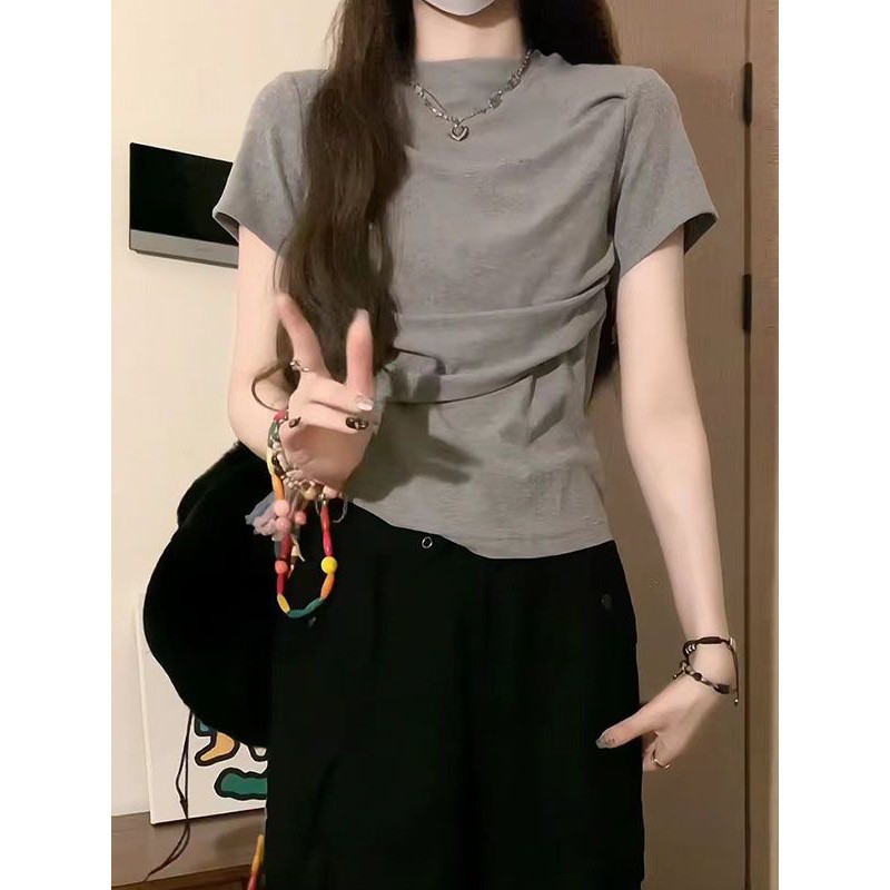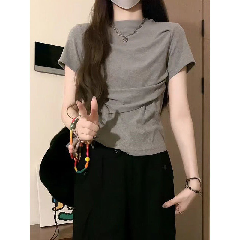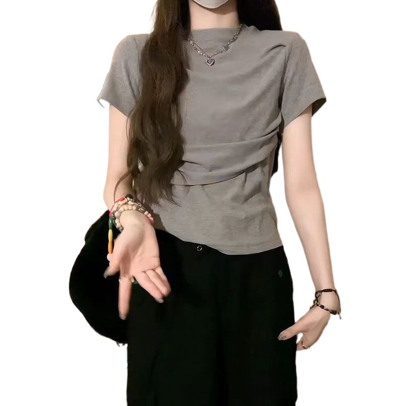 | nameOriginal | Sweet Spice Girl Short-sleeved Shirt Women's 2024 Summer Design Tight Waist Pleated Shoulder Navel Short Casual Top |